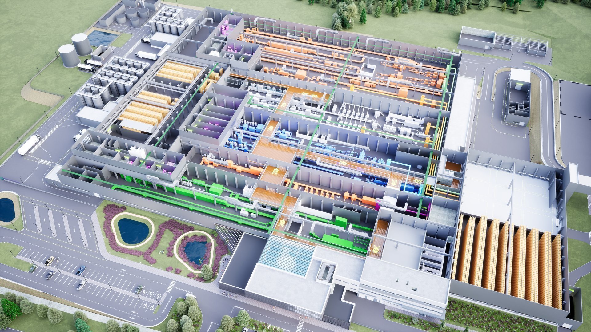 Hala produkcyjna z częścią biurowo-socjalną. Konstrukcja stalowa, duże rozpiętości, nowoczesne systemy wentylacji i oświetlenia. Projekt realizowany w technologii BIM od fazy koncepcyjnej.