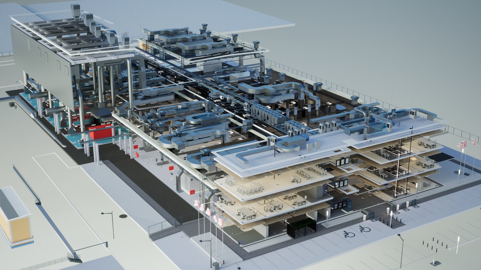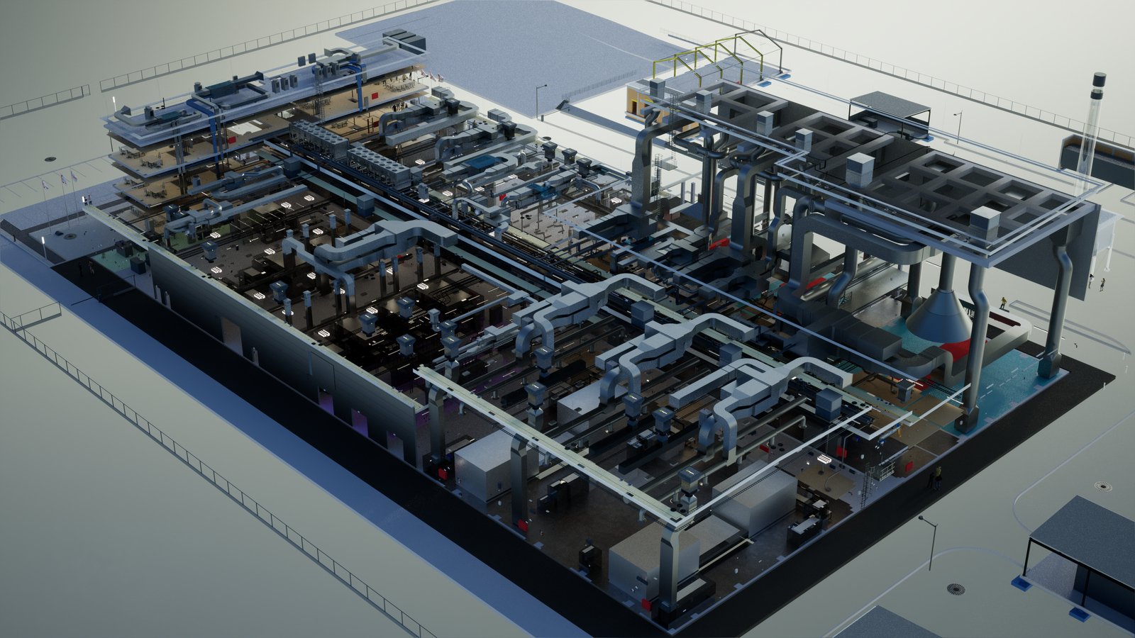 Hala produkcyjna z częścią biurowo-socjalną. Konstrukcja stalowa, duże rozpiętości, nowoczesne systemy wentylacji i oświetlenia. Projekt realizowany w technologii BIM od fazy koncepcyjnej.